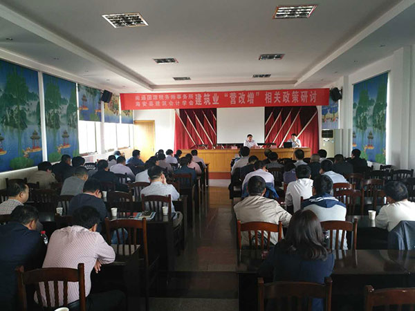 集團(tuán)公司董事長馬和軍在培訓(xùn)前做動員講話,他要求集團(tuán)上下要高度重視“營改增”給建筑行業(yè)帶來的沖擊和機(jī)遇,參培人員要虛心聆聽財稅專家的講解,認(rèn)真學(xué)習(xí)、理解、適應(yīng)“營改增”政策,在新的稅制改革起跑線上,要用新的思維、新的架構(gòu),不斷完善新的管理流程,以務(wù)實(shí)有效的行動積極應(yīng)對“營改增”。培訓(xùn)邀請了縣建筑會計學(xué)會會長黎勝玉高級會計師、海安縣國稅局稅征科科長劉家健、海安國源稅務(wù)事務(wù)所所長徐進(jìn)注冊稅務(wù)師等專家,分別從營改增的目的和意義、解讀營改增試點(diǎn)文件及通告、營改增實(shí)務(wù)及納稅申報等進(jìn)行了講解。