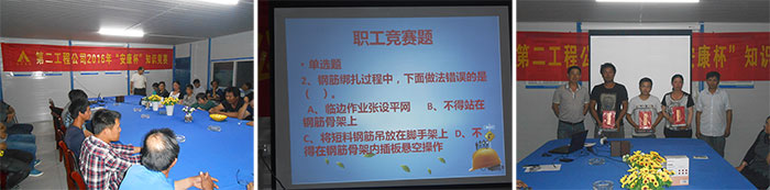 6月9日,普及安全生產知識及技能,組織所屬項目部開展“安康杯”知識競賽,參賽人員經過筆試、激烈的搶答等環節,最終板橋A地塊二期二標段項目榮獲團體一等獎、新港龍庭項目榮獲團體二等獎、善水灣項目榮獲團體三等獎,此次競賽既普及了安全知識,又增強了團隊的凝聚力。同時工程公司對施工現場進行拉網式安全檢查,對危險性較大的分部分項工程進行專項檢查,排除安全隱患,防止事故的發生。