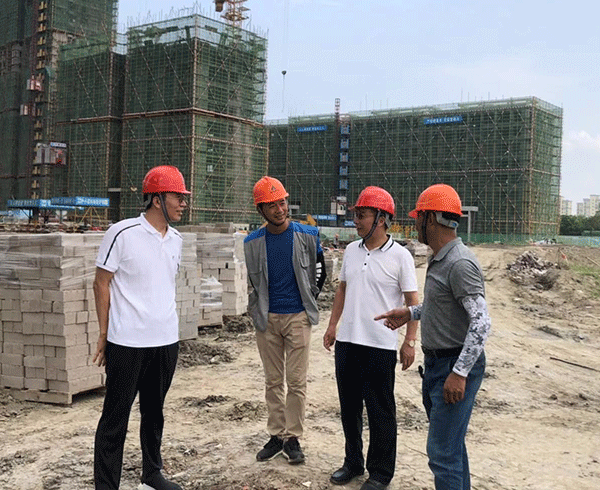 在香悅四季苑項目,劉厚純書記一行深入施工現場,對現場布置,各施工部位進行了檢查,聽取了項目工作匯報,對項目取得的成果表示了肯定,對發現的問題提出了整改意見。他指出,項目日常管理要做到常態化、規范化、精細化,要以公司 “安全高效鑄精品,環保誠信創輝煌” 的管理方針為指引,做好安全施工,打造精品工程,在創收創效的同時創譽樹名。