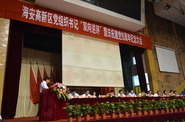6月27日,海安高新區黨組織書記“雙向述評”暨慶祝建黨91周年大會在我縣海中體藝館舉行。縣委常委、海安高新區黨工委書記張亞曦及全體黨政負責人、各局(辦)、各街、村(居)全體人員、各黨(總)支部書記、全體縣、鎮黨代表參加了會議。