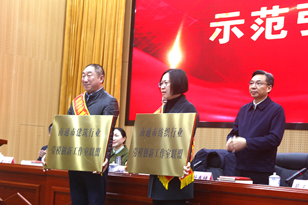 儀式上,對在開展勞模創新工作室創建和勞模黨支部“薪火工程”系列行動中,大力弘揚勞模精神、勞動精神和工匠精神,充分發揮勞模在推動高質量、建設“強富美高”新南通中起到示范引領作用的先進典型進行了表揚,集團創建的“馬和軍勞模創新工作室黨支部”被命名“南通市十佳勞模創新工作室黨支部”榮譽稱號,同時,集團副總經理、工會主席溫鶴華還接收了“南通市建筑行業勞模創新工作室聯盟”的牌匾。