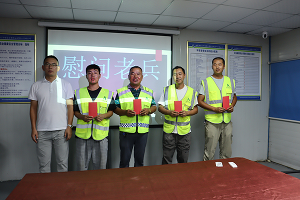 各項目經理為14名退伍軍人發放了慰問金,向他們表達感謝和祝福,希望他們珍惜軍人的榮譽和稱號,退伍不褪色,退役不退志,繼續發揚軍隊的革命傳統和優良作風,在安全、生產、經營等標準化軍事化工作中發揮更加積極的作用,為達欣集團高質量發展做出新的貢獻。