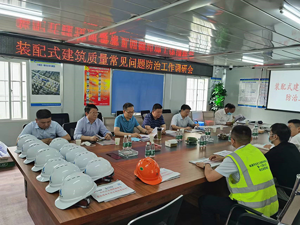 吳慧強從項目概況、前期準備、常見問題和防治、現場不足五方面向領導們作了匯報。他表示,項目部將結合工程實際經驗,積極為裝配式產業發展建言獻策。