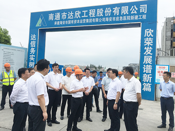 8月25日下午,海安市委副書記、市長譚真率隊來到海安市應急醫(yī)院新建工程項目,開展“月月看、家家到”活動,對項目推進情況進行實地考察。海安市人大常委會主任張亞曦,市政協(xié)主席李春旺等市四套班子主要領導、各相關(guān)部門及各區(qū)鎮(zhèn)主要負責人陪同調(diào)研,集團領導劉厚純、王邦國等參加活動。