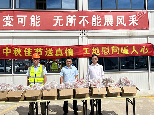 在項目現場,倪志榮將中秋月餅、水果等慰問品一一發到大家的手中,與大家進行了親切的交談,了解他們的生活情況、身體狀況,詢問他們工作中遇到的困難等。他表示,公司始終心系一線職工,想職工所想、急職工所急,切實為廣大職工為提供安全、放心、健康的施工環境,希望大家共同為工程公司的健康發展而努力。