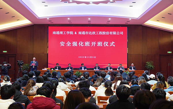 12月8日下午,南通理工學院-達欣集團校企合作“安全強化班”開班儀式,在南通理工學院海安校區舉行。南通理工學院董事長陳明宇,黨委副書記、海安校區黨工委書記、管委會副主任周宗泉,校長助理、海安校區管委會副主任謝衛軍等校領導;達欣集團董事長馬和軍,黨委書記劉厚純,常務副總經理王邦國,副總經理、安全總監、工會主席溫鶴華等出席活動。南通理工學院建筑工程學院院長、黨總支書記劉榮桂主持會議。