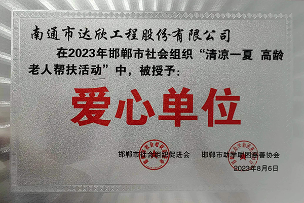 近日,集團第三工程公司積極參與由邯鄲市民政局倡導,邯鄲市社會組織促進會、邯鄲市助學助困慈善協會共同承辦的“清涼一夏 高齡老人幫扶慰問”活動,并被授予“愛心單位”榮譽稱號。
