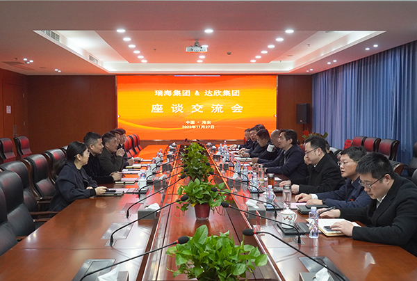 11月27日下午,瑞海集團黨委書記、董事長郭玉祥帶領全體班子成員、黨委委員、全體黨員、預備黨員等60余人,來達欣集團開展學習交流活動,集團董事長馬和軍、副總經理陶成華、范友林等領導參加活動。