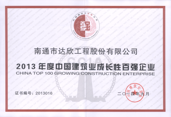 根據《中國建筑業雙百強企業評價辦法》,經企業申報、各地區和有關行業建筑業(建設)協會審核、中建協復核、專家評審、公示等程序,我公司入選2013年度中國建筑業成長性百強企業,名次排位第16名,較2012年度提升12位,較2011年度提升32位。