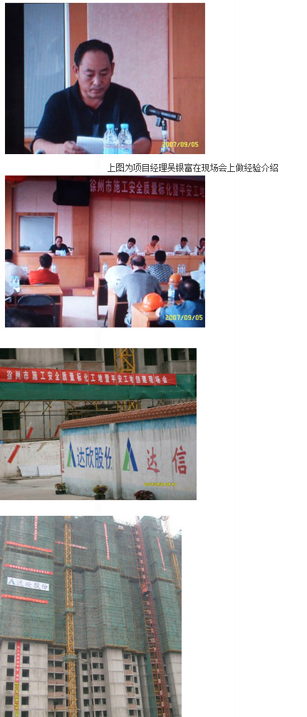 大會上吳經理的發言得到了大家一次又一次的掌聲,建設局安監處王處長最后對這次的現場會作了很高的評價。通過這一次的活動,極大的提高了“達欣股份”在徐州建筑市場的知名度,為“達欣股份”進軍強手之林奠定了基石,提升了我們的品牌形象。