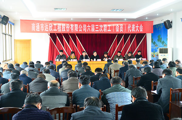 公司六屆三次職工(會員)代表大會于2015年2月26日上午在總部四樓會議室隆重召開。海安縣總工會經審委主任陸威生、海安縣建筑工程管理局副局長、建筑工會主席徐培鴻應邀前來參加了會議。