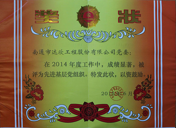 會議表彰了100家先進基層黨組織和100名優秀共產黨員。公司黨委被海安縣委表彰為先進基層黨組織。