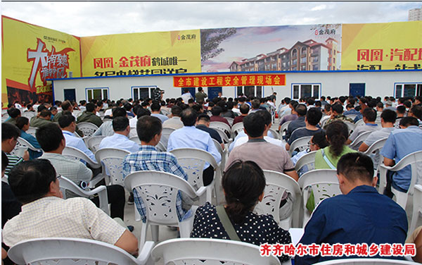 8月25日上午,齊市建設安全管理現場會在我公司施工總承包的鳳凰?金瑞府項目舉行。市住建局黨委書記、局長黃宇、市住建局黨委委員副局長王紳,全市各縣(市)區住建局主管副局長、安全站站長,在建工程建設、監理、施工區企業負責人,企業安全負責人、總監理工程師、安全監理工程師、項目負責人、技術負責人500多人參加會議。