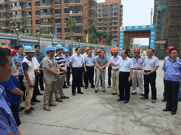 8月27日上午,宿遷市副市長李榮錦率市住建局主要負責人及宿遷市10余家建設單位、監理單位、施工單位負責人蒞臨第一工程公司承建的星月城二期進行參觀考察,這是李榮錦副市長繼8月18日檢查指導后第二次來我項目,重點推介項目揚塵噴水設備系統控制做法及現場安全文明標準化施工特色。