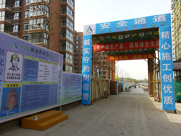 參觀考察結束前,李副市長在工地現場發表講話。首先,他對本項目現場布置、標準化定型化的臨時設施以及綠色防塵控制措施給予了充分肯定,特別是對現場布置的車輛沖洗裝置更是贊不絕口,他要求參與考察的各施工方能夠大力推廣此種車輛沖洗裝置做法,為宿遷環境保護作出貢獻;其次,他要求市住建局要加強建筑工地督查,對不符合要求的建筑工地要求限期整改,并按規定對所有建筑工地進行統一檢查驗收,對整改不到位的,追究相關責任人責任,按相關規定進行處理;最后,他要求前來參觀的建設、監理、施工單位要借鑒本項目部的現場管理模式,認真總結自身管理不足之處,務必學以致用,促進宿遷市施工現場管理工作和安全工作上走上新臺階。